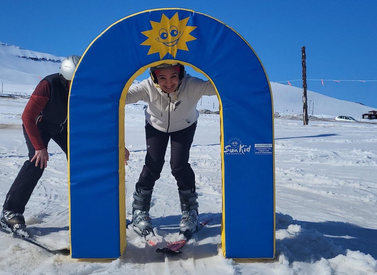 „Þeim fannst þetta ótrúlega gaman, brosið fór ekki af þeim,“ segir Jóhanna Björk Sveinbjörnsdóttir, verkefnastjóri erlendra nema, en síðasta vetrardag (miðvikudag í síðustu viku) fóru tólf nemendur í íslensku sem öðru máli með kennurum sínum á skíði í Hlíðarfjall. Einhverjir nemendanna höfðu áður farið á skíði í útivistartíma hjá Ólafi H. Björnssyni íþróttakennara en bróðurpartur þeirra var að stíga á skíði í fyrsta skipti. Upplifunin var því sterk. Og ekki skemmdi umgjörðin, frábært skíðaveður og færi eins og best verður á kosið í Hlíðarfjalli.
