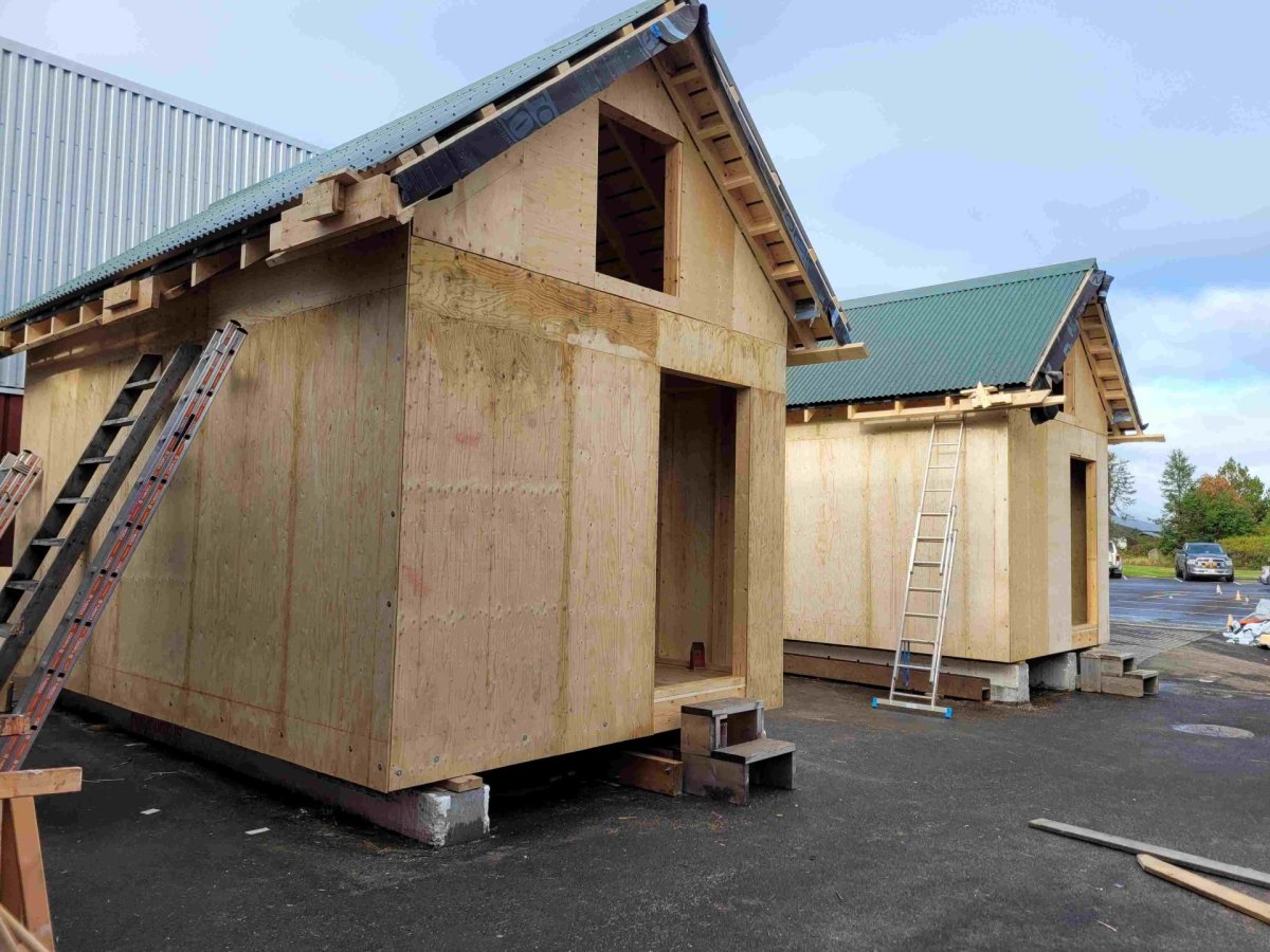 Þessar myndir voru teknar þegar húsin voru reist í liðinni viku.
