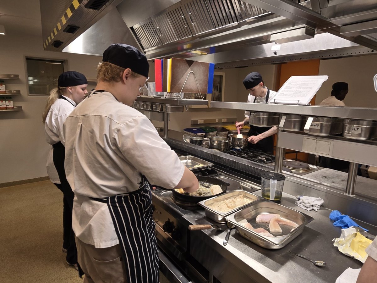 Þegar litið var inn í verklegan tíma hjá Ara Hallgrímssyni í grunndeild matvæla á dögunum var fjölbreytnin í fyrirrúmi. Sumir glímdu við súpugerð, aðrir við að steikja fisk og einnig var bakað matarbrauð. Grunnur nemendanna er auðvitað mismunandi, sumir hafa fengið innsýn og áhuga á matreiðslu með því að vinna hin ýmsu aðstoðarstörf á veitingahúsum, hjá öðrum er lítil reynsla til staðar en mikill áhugi á að læra réttu vinnubrögðin í eldhúsinu eða við framreiðslu. Það sem gildir í þessu eins og svo mörgu öðru er að æfingin skapar meistarann.