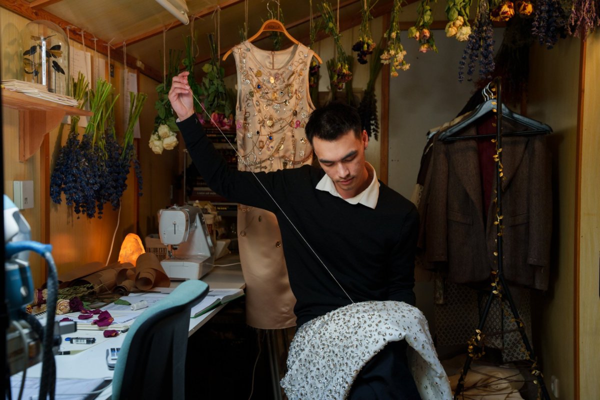 Þegar Akureyringurinn Guðmundur Tawan Víðisson hóf nám í framhaldsskóla haustið 2018 sá hann ekki fyrir sér að starfa sem fatahönnuður í framtíðinni. En eins og oft vill verða taka hlutir óvæntum breytingum og það átti sannarlega við um Guðmund. Hann var fyrstu rúmlega tvö framhaldsskólaárin á náttúrfræðibraut í MA en ákvað á þriðja ári að breyta til og færði sig upp á Eyrarlandsholtið í VMA. Þar varð á vegi hans textíllína listnáms- og hönnunarbrautar og þar með var teningnum kastað. Hann segist ekki hafa haft fatahönnun í huga í byrjun en hann hafi sjálfur haft gaman af að klæðast fallegum og öðruvísi fötum. Eftir því sem hann kynntist náminu betur jókst áhuginn á hönnun og hann minnist nemendaheimsóknar á Iðnaðarsafnið á Akureyri þar sem við blasti fatnaður af ýmsum toga sem framleiddur hafði verið á Sambandsverksmiðjunum á Akureyri. Guðmundur sagði að á þessu augnabliki hafi áhugi hans vaknað fyrir alvöru á viðfangsefninu og hann hafi farið að kynna sér betur sögu hönnunar og fatagerðar á Akureyri og raunar um allt land. Þetta sé heillandi grúsk sem sé auðvelt að gleyma sér í.
