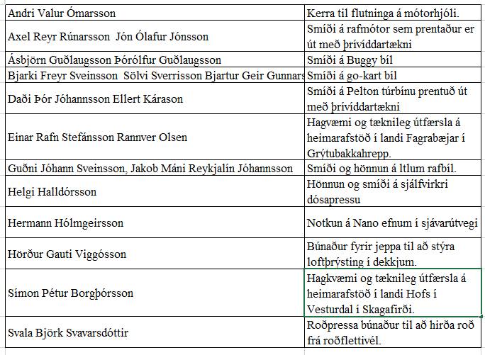 Hér að neðan er yfirlit yfir þau fjölbreyttu verkefni sem nemendur hafa unnið: