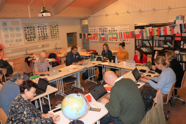 Þegar litið var inn til þátttakenda í verkefninu sl. föstudag voru þeir önnum kafnir við að setja saman stuttar greinargerðir um það sem þeir höfðu upplifað í þessari Íslandsheimsókn og tengist viðfangsefninu – skóla/vinnustöðum.